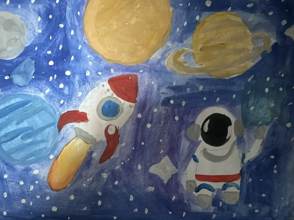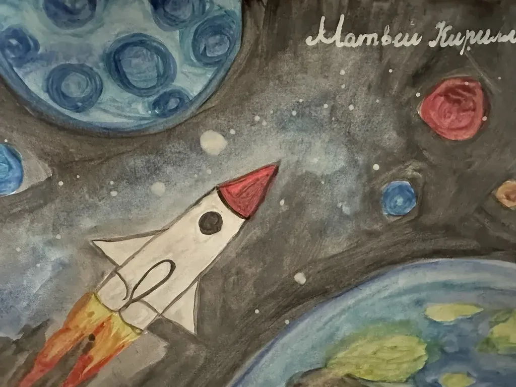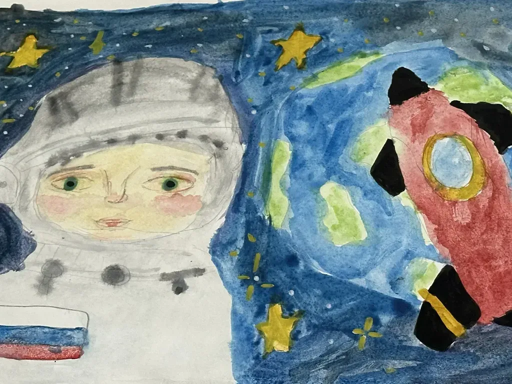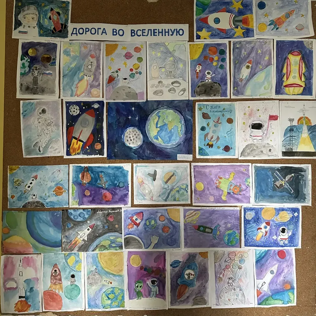 Ко Дню космонавтики! Наши ребята подготовили чудесные космические рисунки — яркие и вдохновляющие! ✨ Мы гордимся, что именно наш советский человек стал первым покорителем космоса!